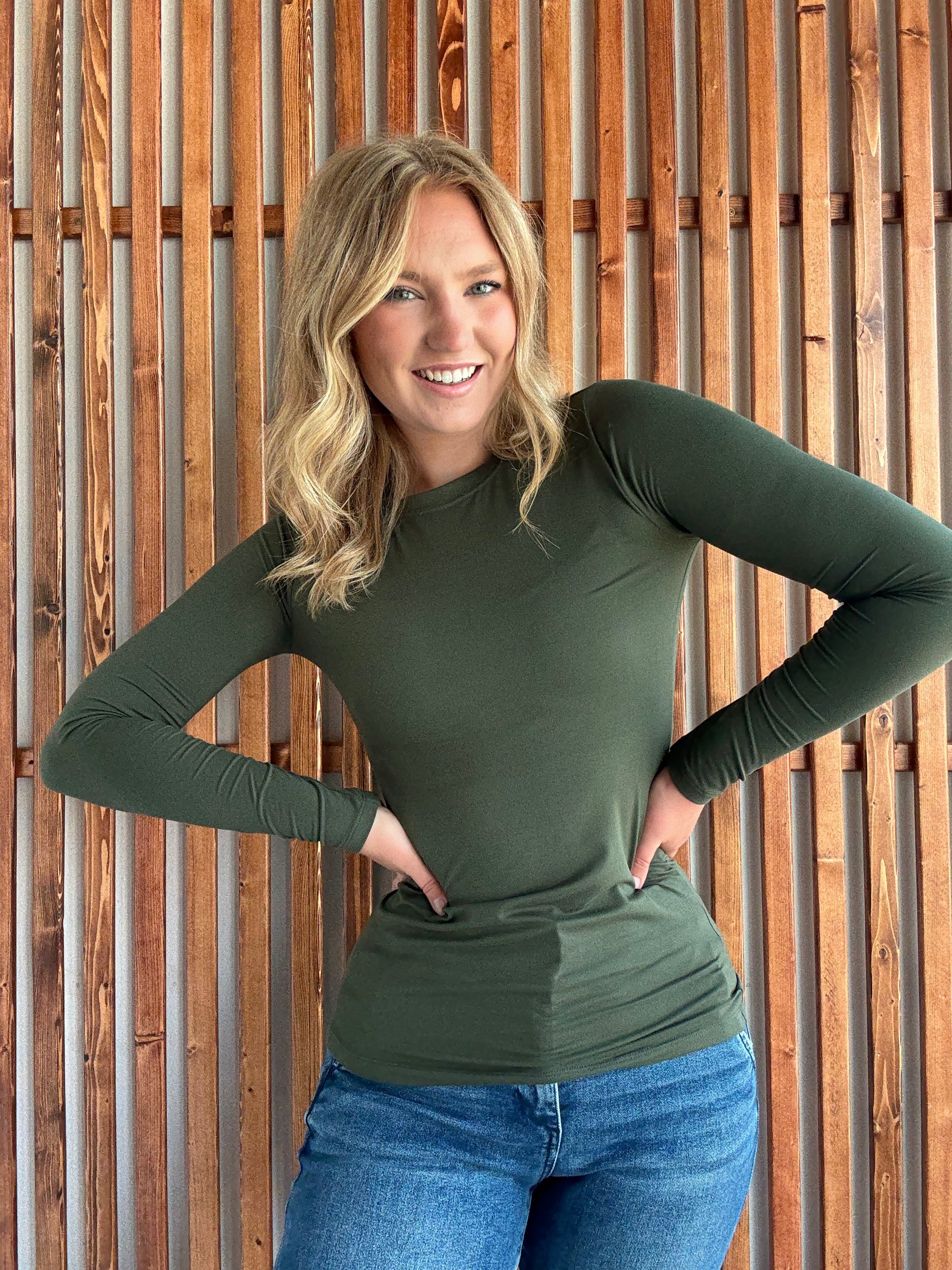 Butter Soft Round Neck Long Sleeve - Dark Olive