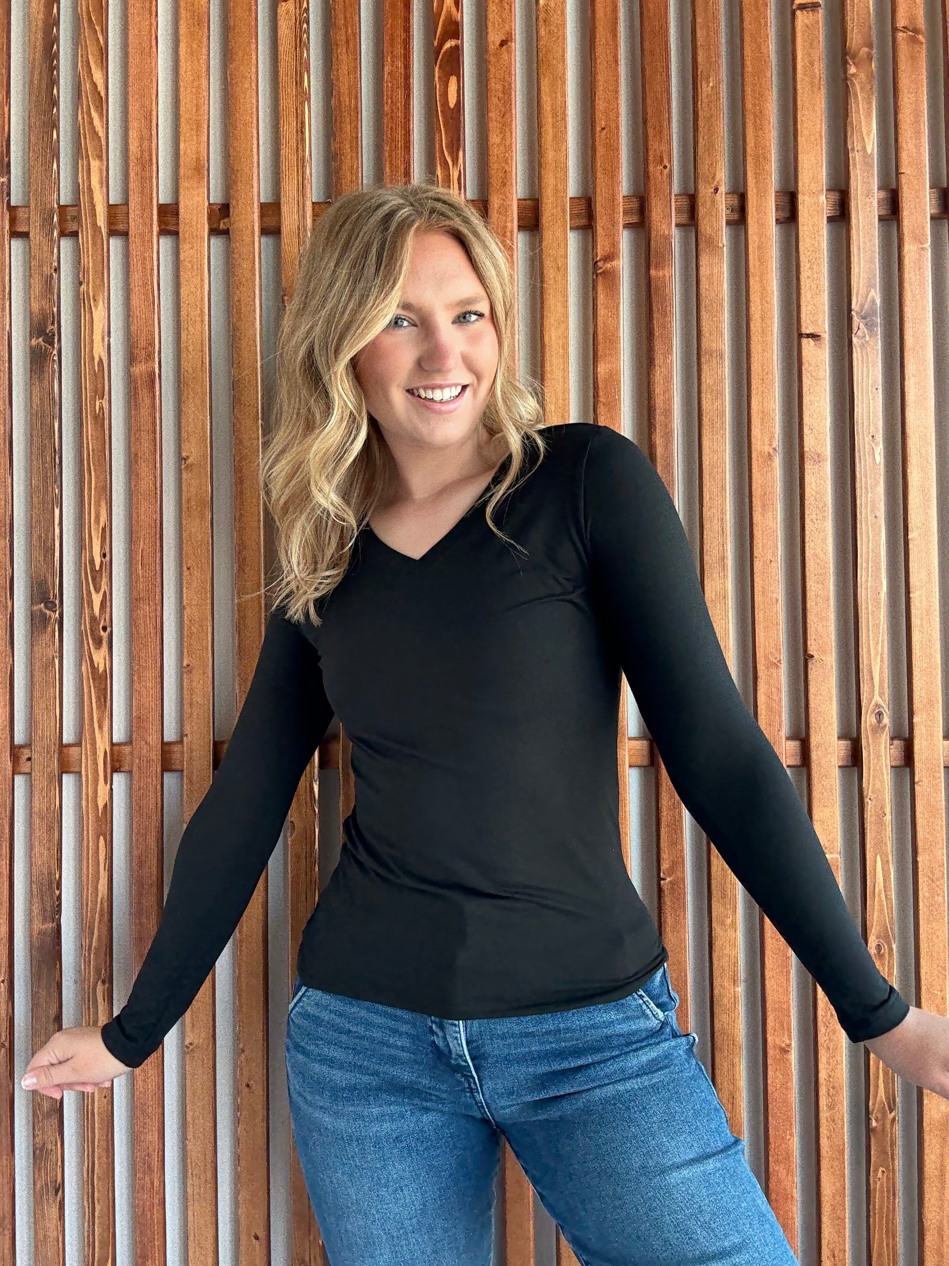 Butter Soft V-Neck Long Sleeve - Black