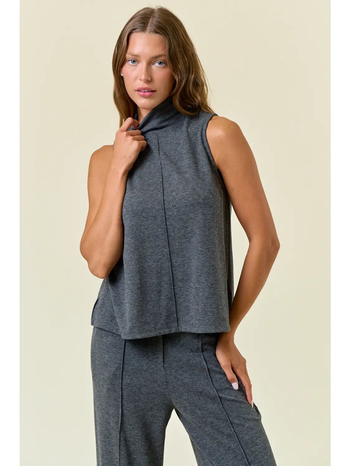 Experience cozy elegance with the Charcoal Buttery Soft Pintuck A-Line Tank. Its luxuriously soft fabric feels like a gentle hug all day, while the modern A-line silhouette flatters every shape. The chic pintuck detailing adds a stylish twist that elongates your look, and the high mock neck brings a trendy touch with just the right amount of coverage. Perfect for playful days and relaxed vibes!