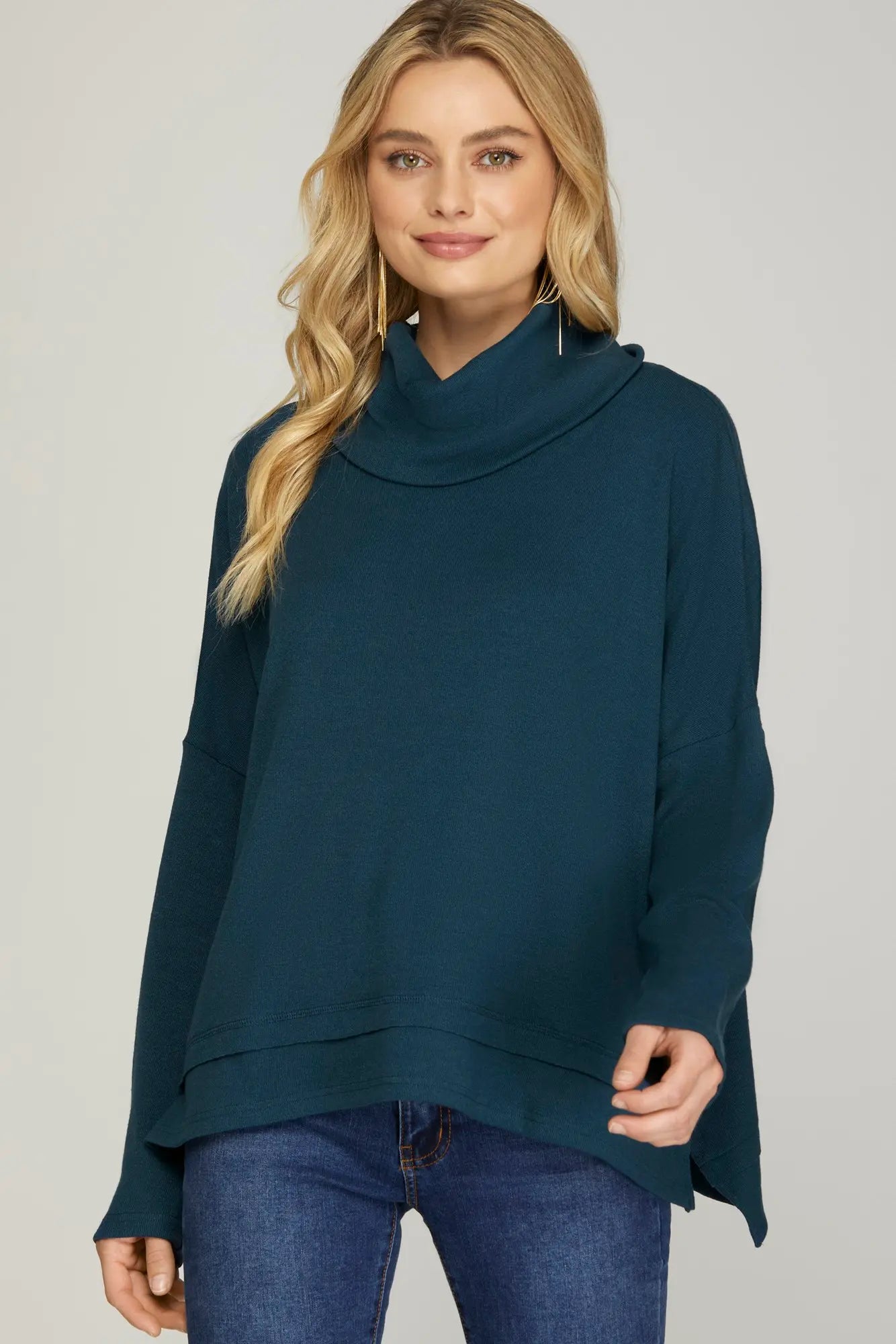 Cozy Long Sleeve Knit Turtleneck - Teal