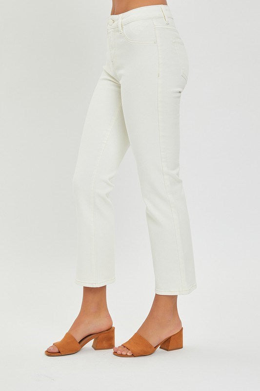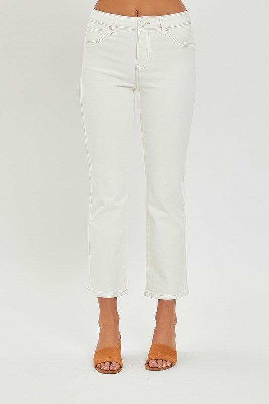Harper Cream MR Crop Straight Leg Risen Jeans
