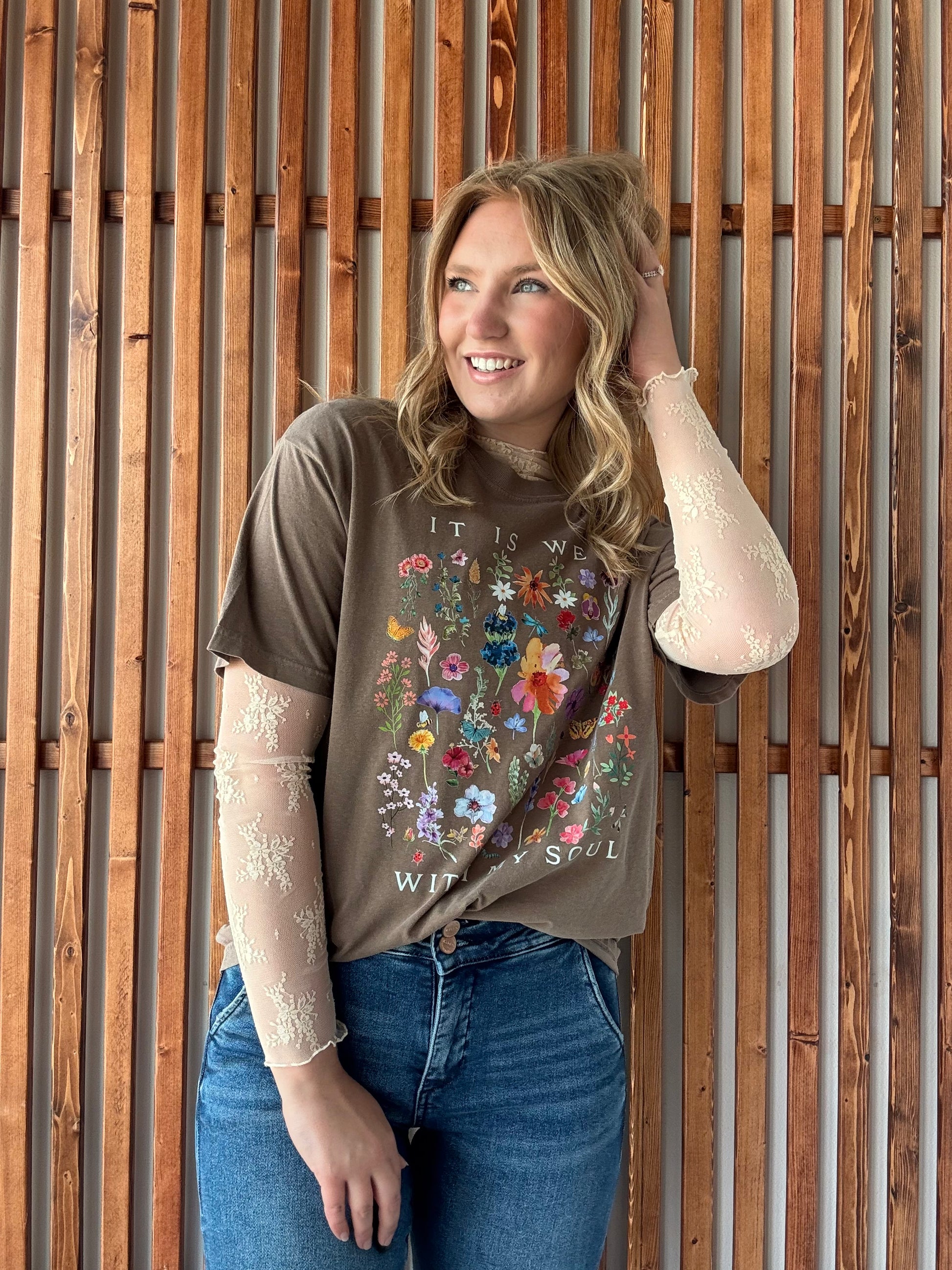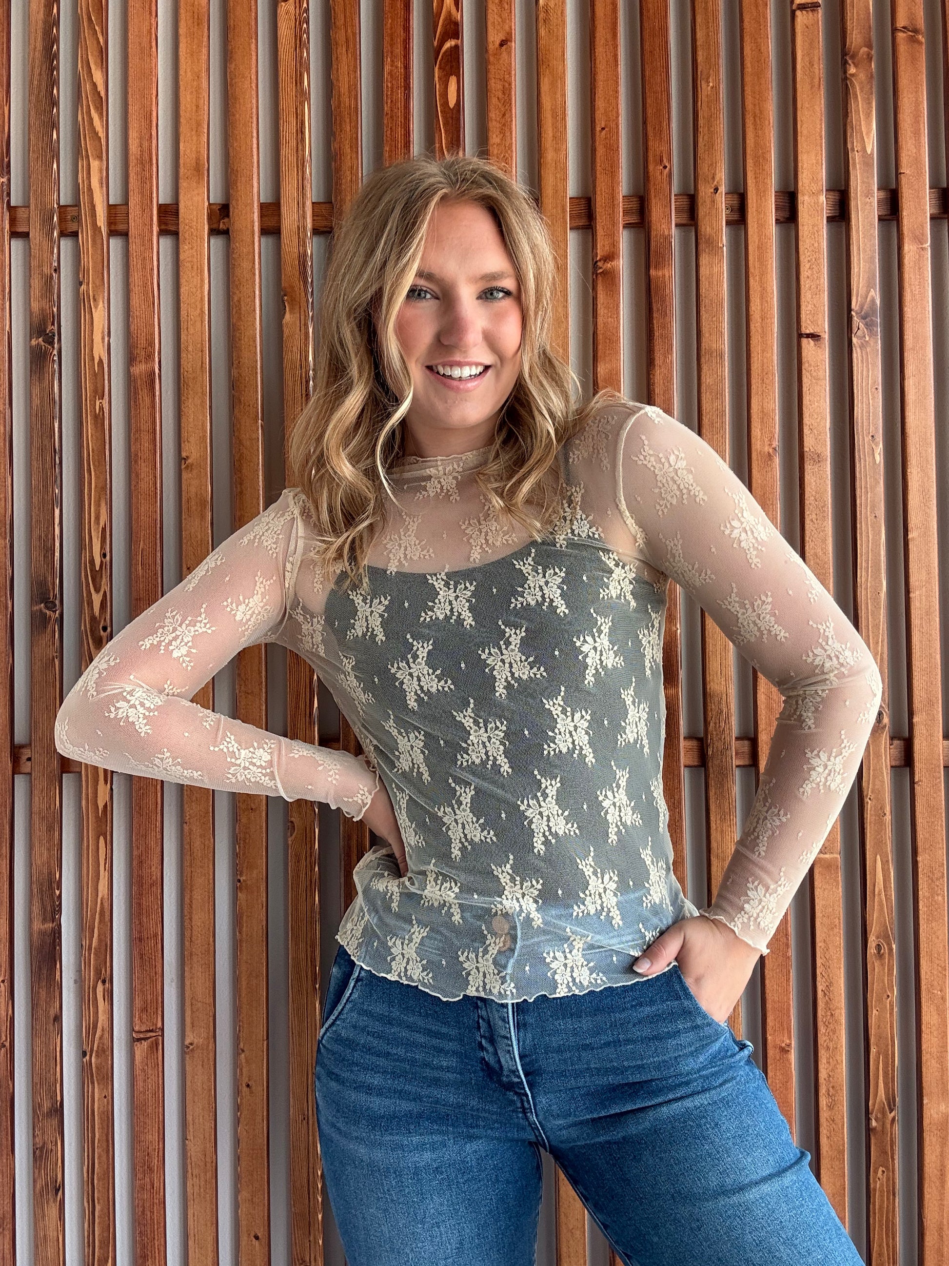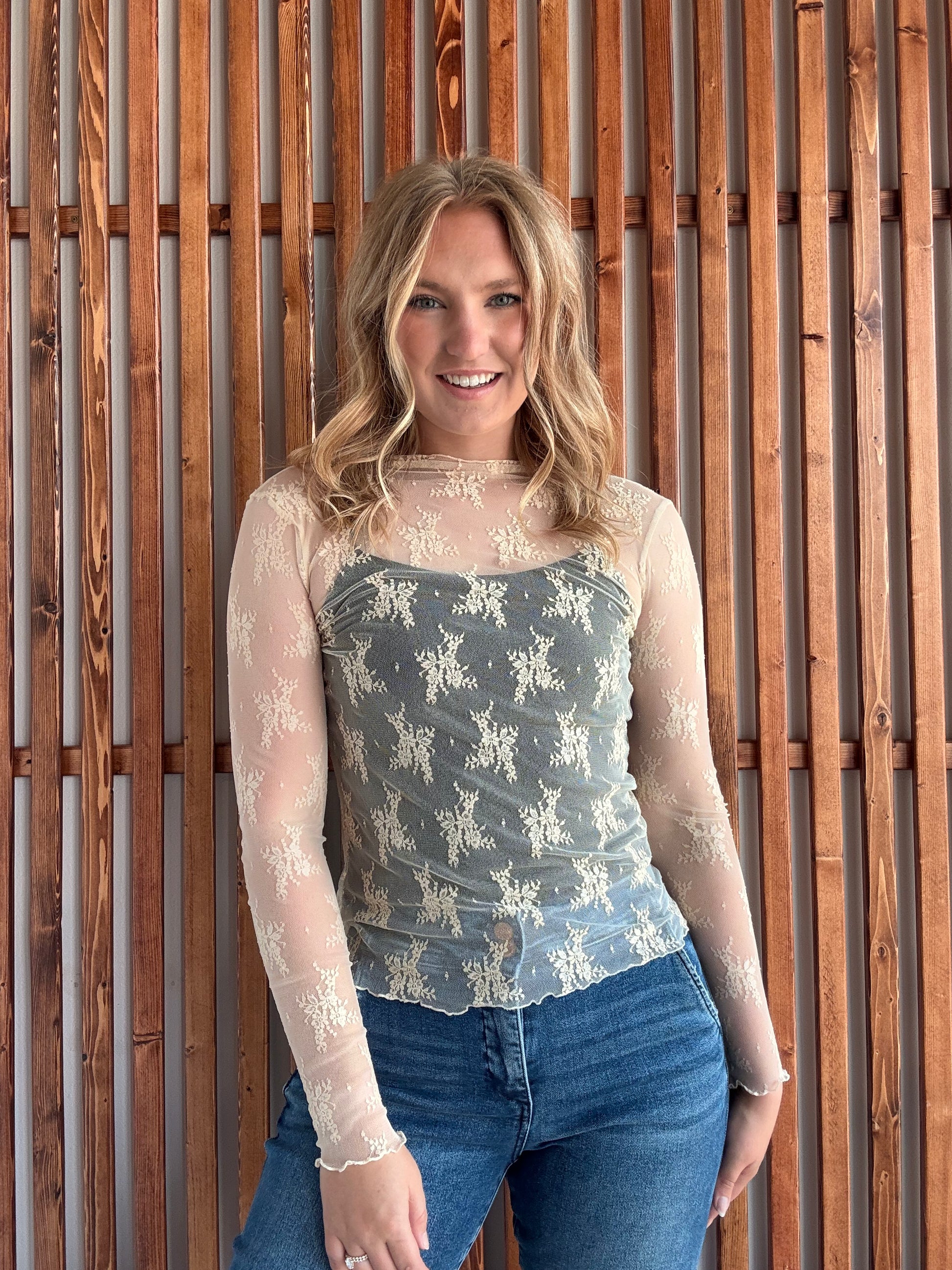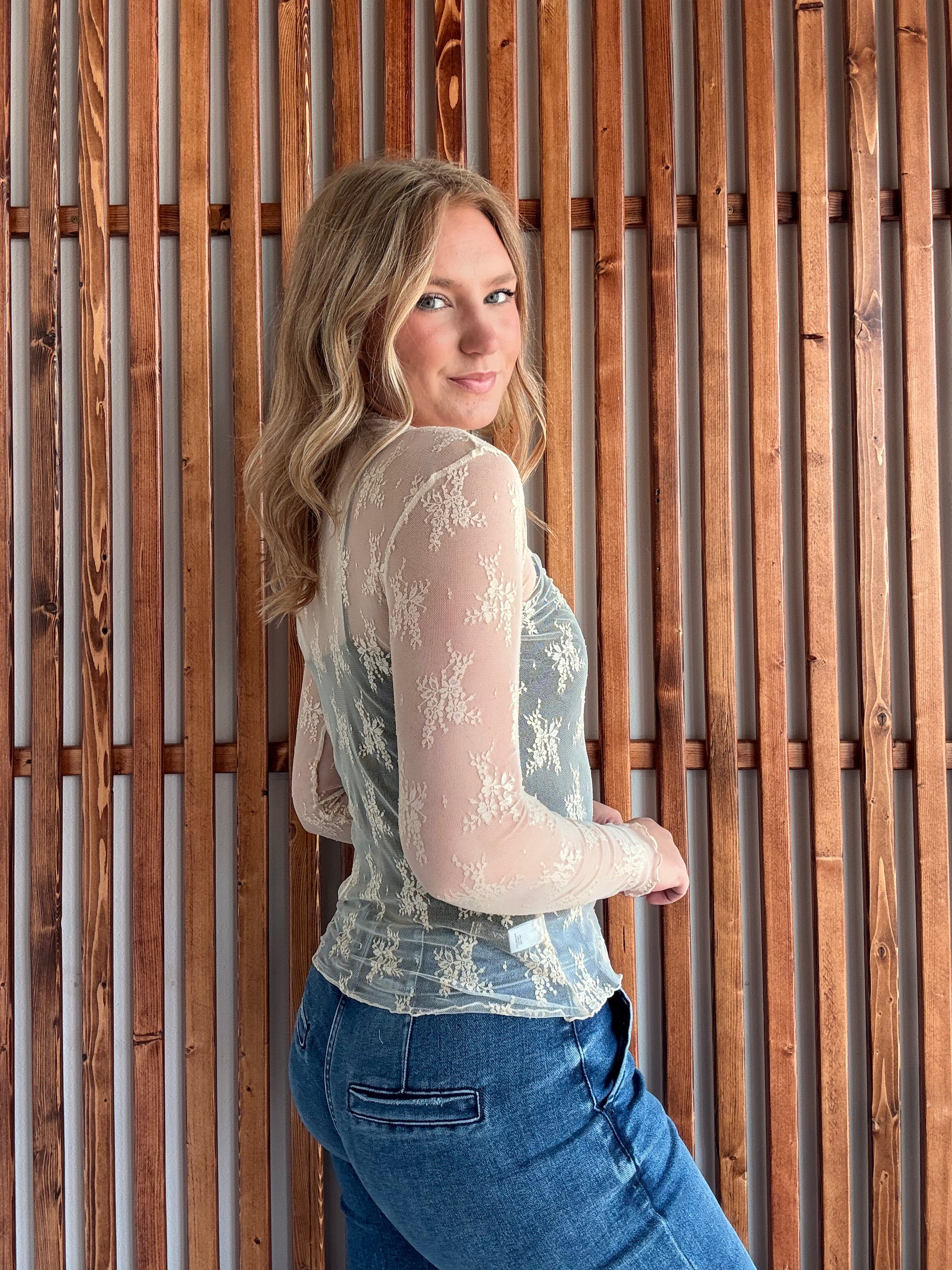 Elevate your style with this Lace Mock Neck Long Sleeve, perfect for layering with a flirty, see-through charm. Its delicate lace adds a touch of whimsy while the mock neck keeps things chic and fun. Pair it with your favorite graphic tee or wear solo with a tank to let your playful side shine through!