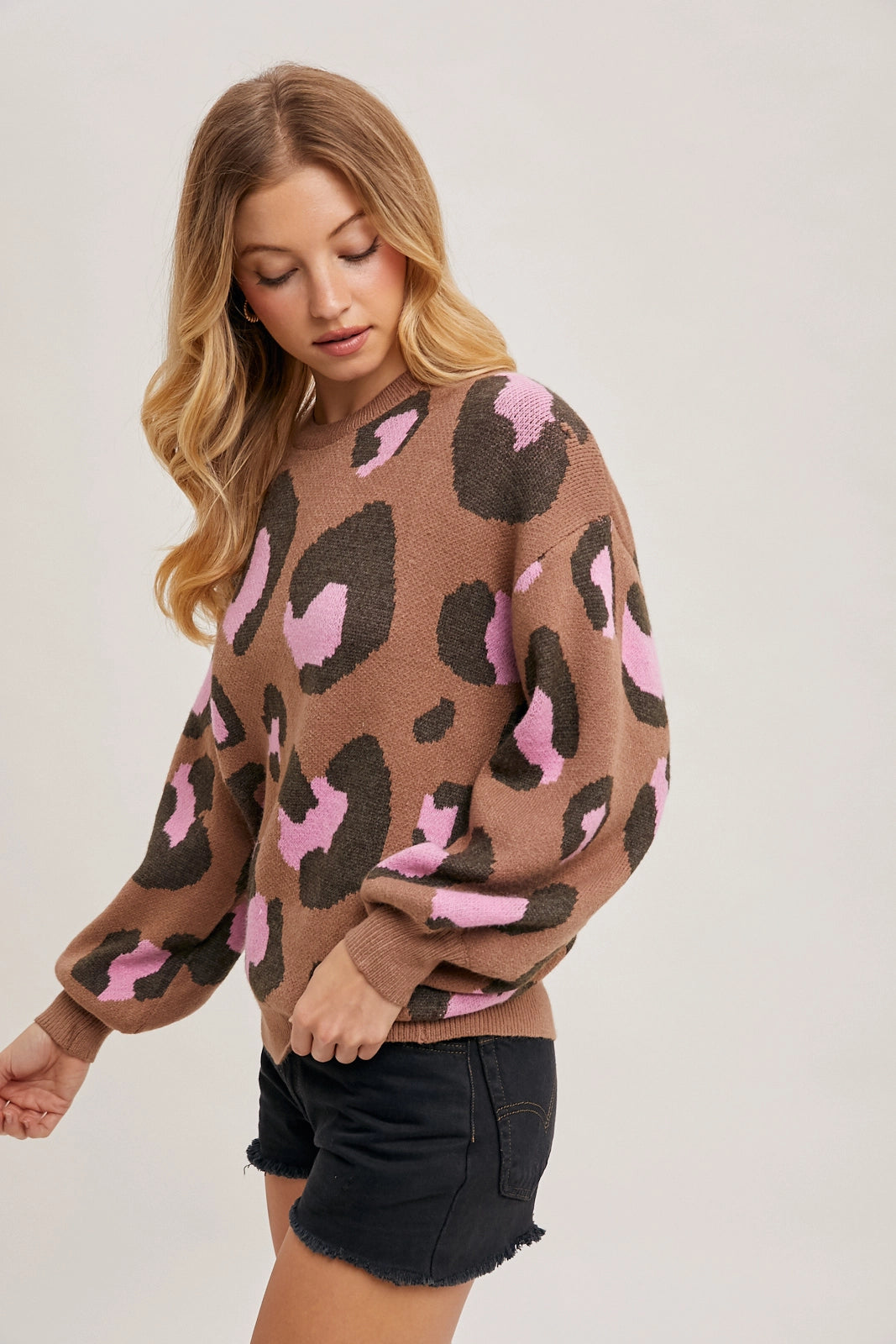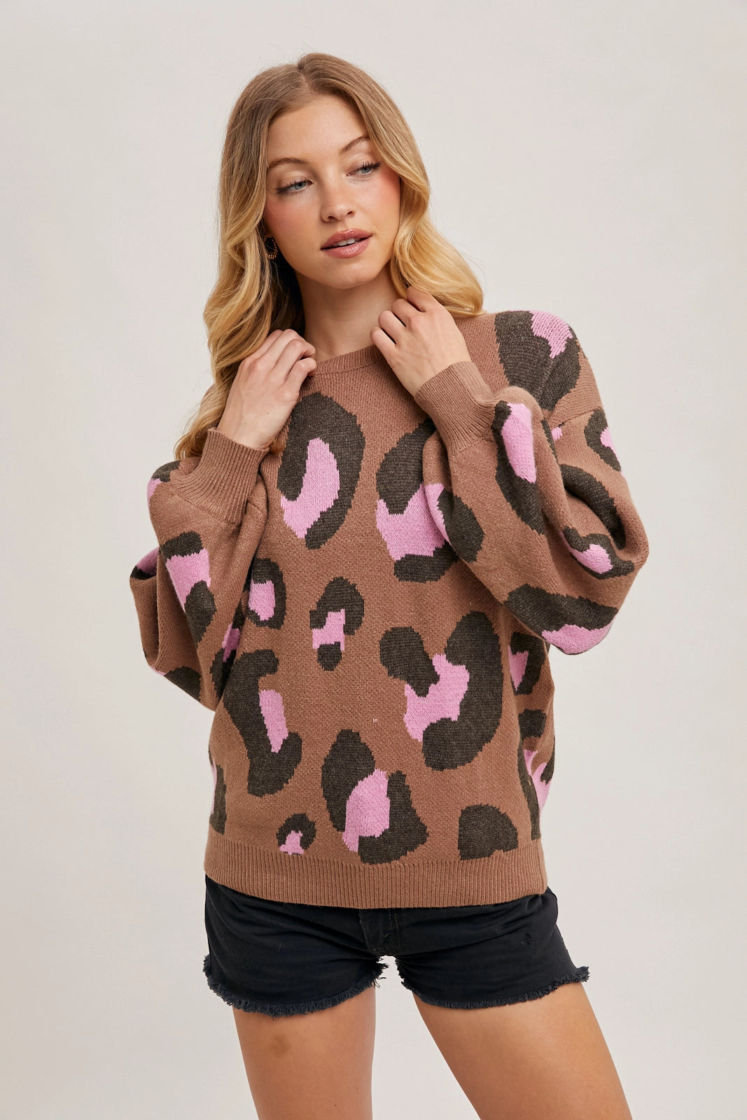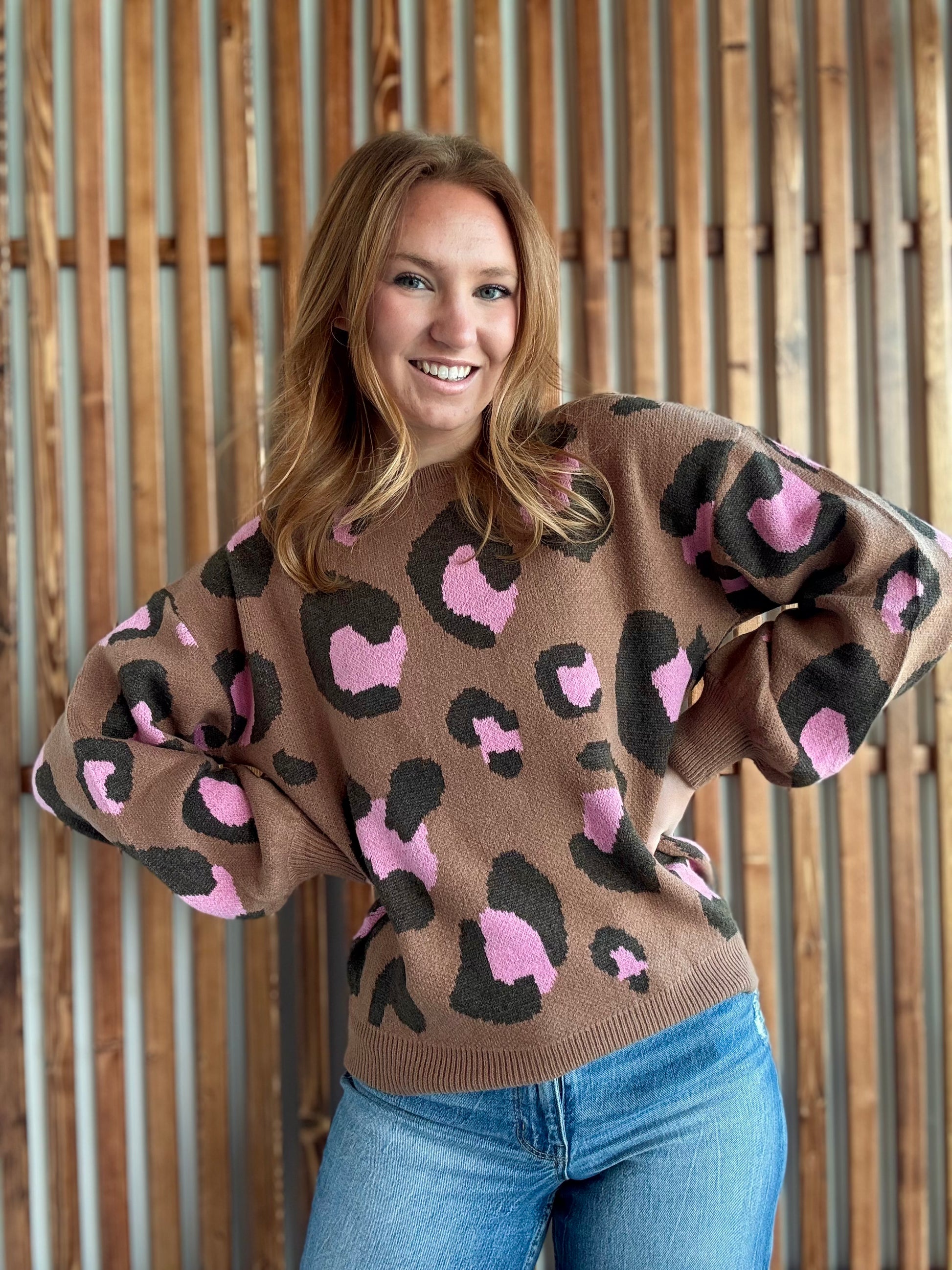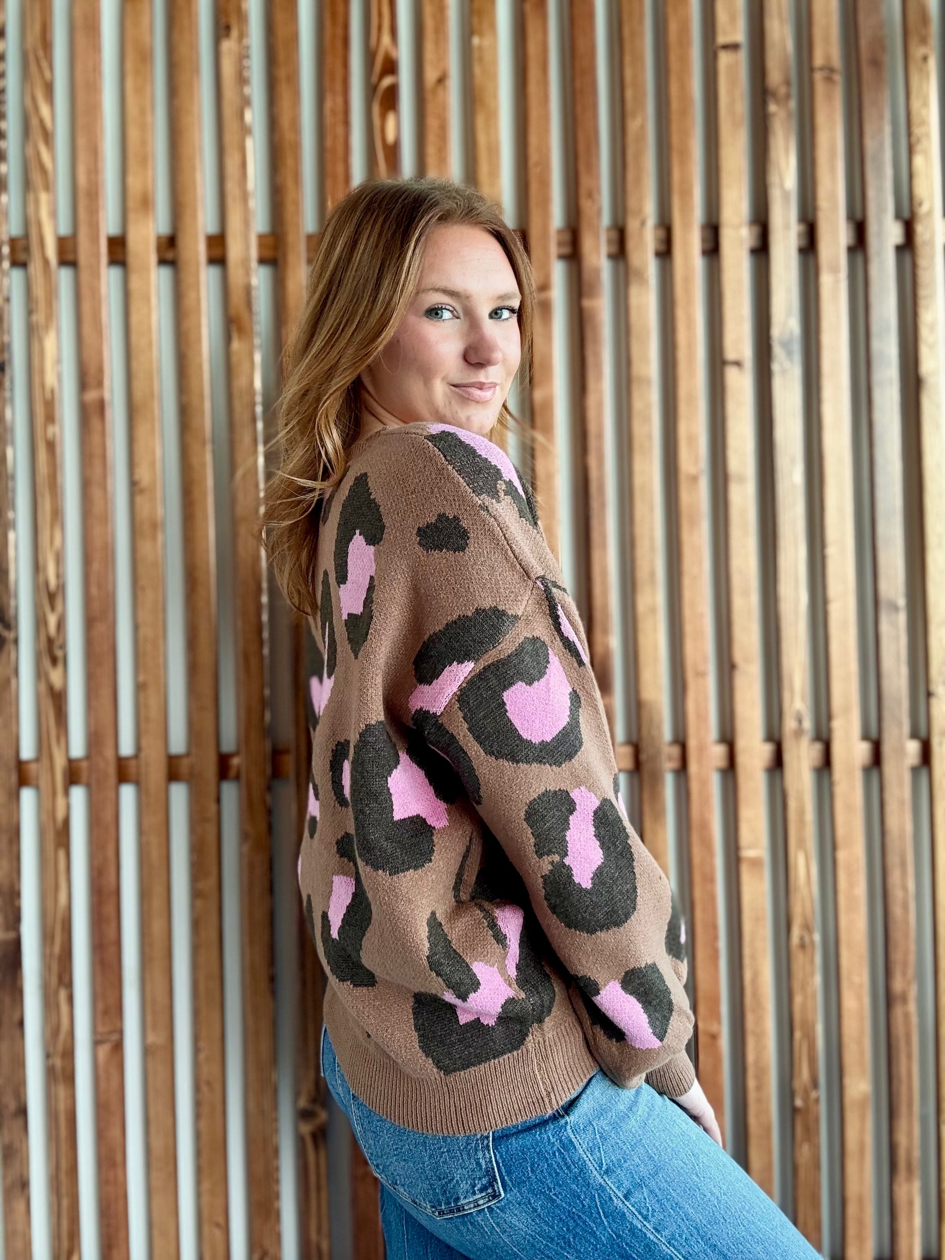 Mocha & Pink Leopard Sweater - FINAL SALE