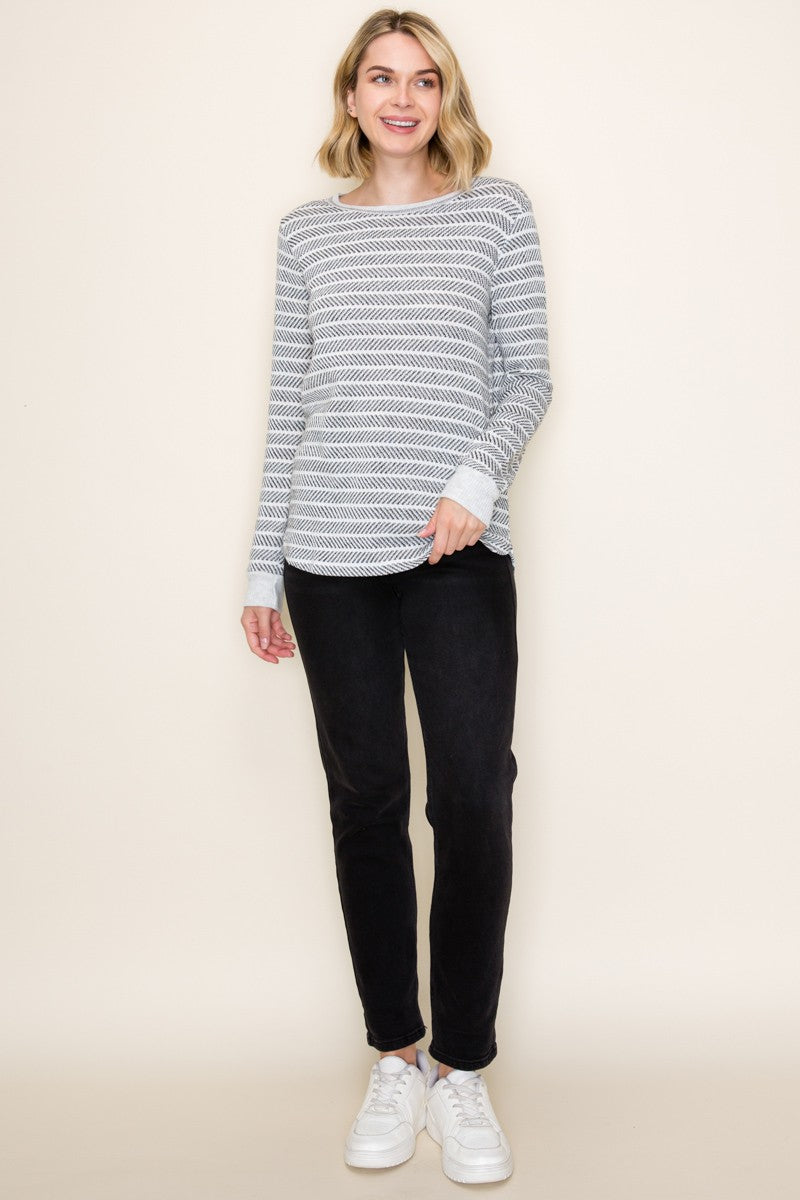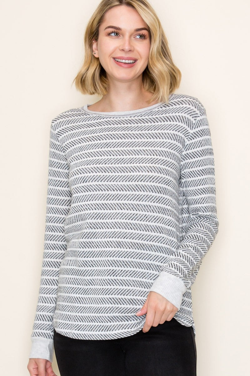 Cozy meets cool in this Light Grey Textured Stripe Pullover Knit Top. Featuring a wide crew neck and long sleeves, its subtle striped texture adds a fun twist on a classic knit. Perfect for layering or wearing solo, this pullover keeps you comfy while bringing effortless style to your casual days.