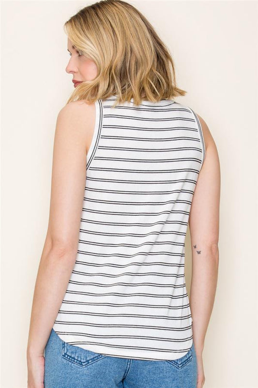 Sleeveless Hacci Black Striped Top
