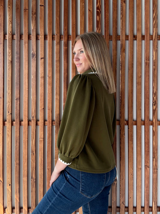 Chambray Collared 3/4 Tab Sleeve Button Down Shirt