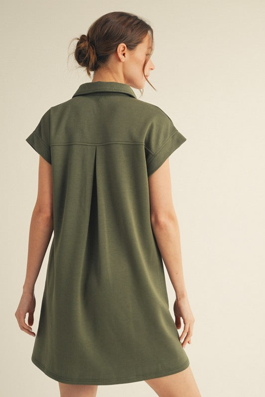 Solid Collared Pockets Dress - Olive