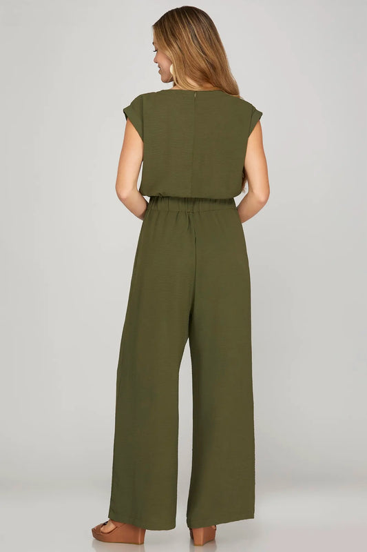 Front Tie Sleeveless Jumpsuit - Olive