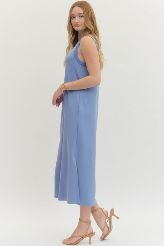 Rib Trim Sleeveless Midi Dress - Chambray