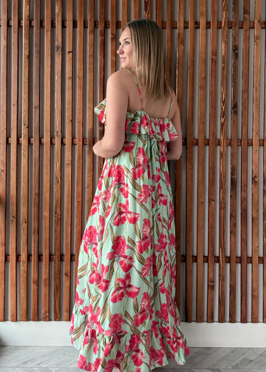 Floral Tube Maxi Dress - Mint/Pink