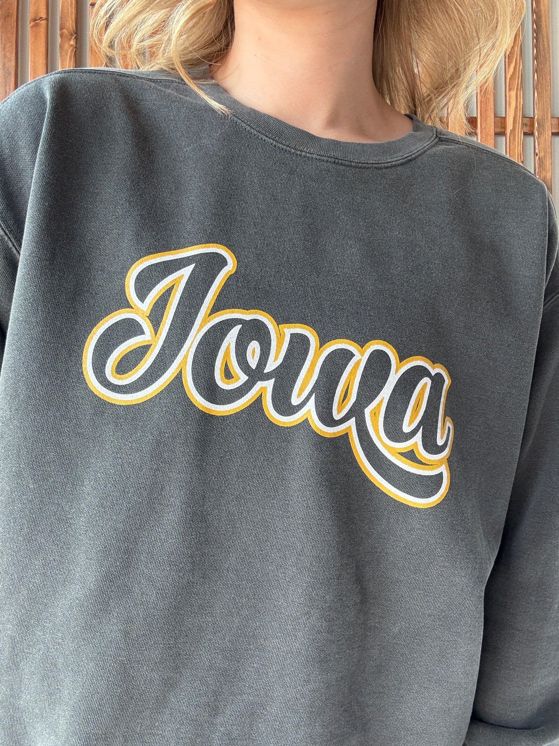 Cozy up in our Double Layer Vintage Iowa Sweatshirt, featuring a playful double-color design that pops beautifully against a charcoal backdrop. Made from soft Comfort Colors fabric, this crewneck blends retro charm with everyday comfort—perfect for showing off your Iowa pride with a fun twist.