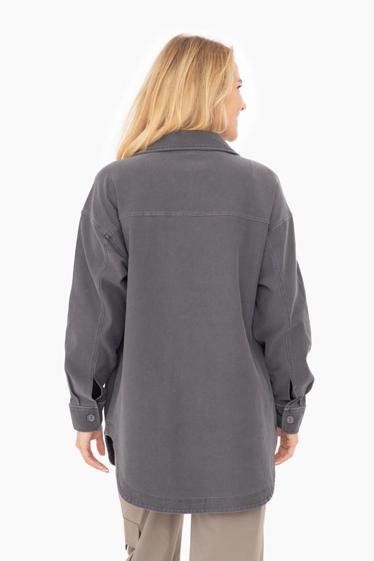 Oversized Cotton Blend Shacket - Black