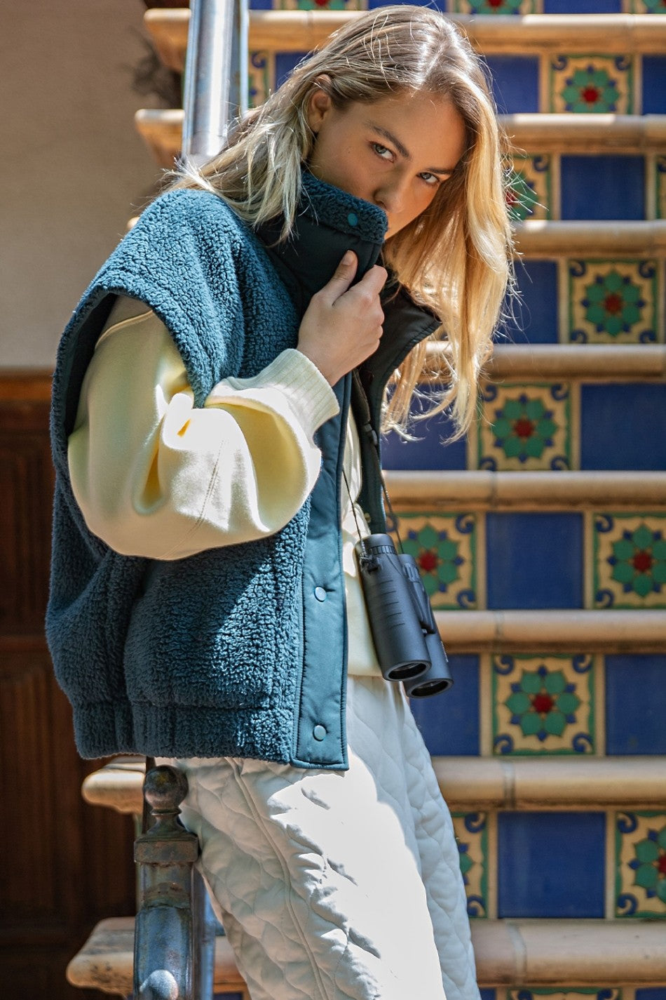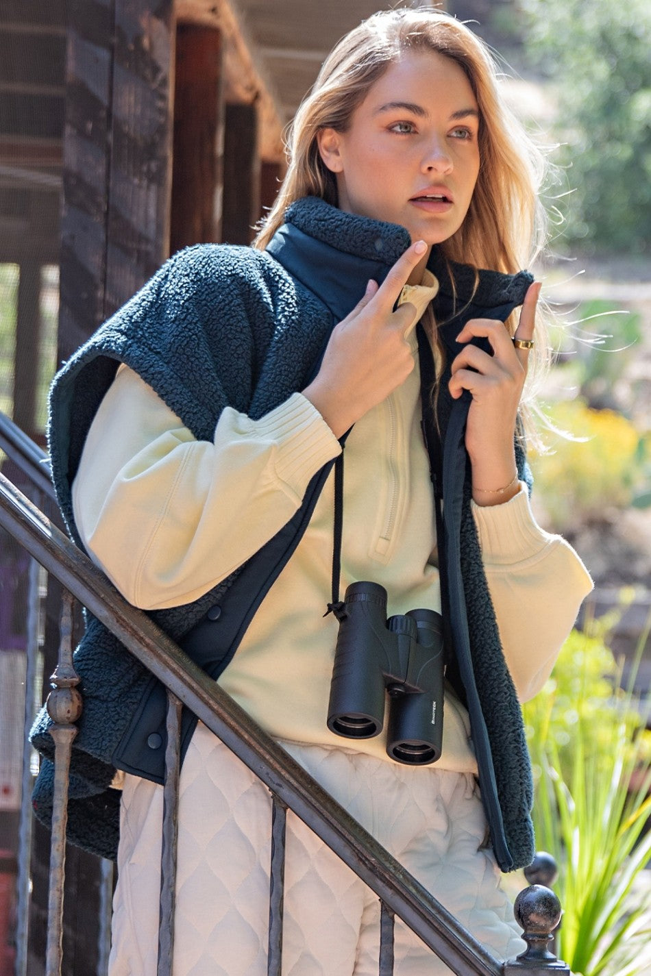 Snuggle up in the Oversized Micro Sherpa Vest in Dark Sea Green! This playful layer features plush micro sherpa fabric for cozy warmth, a relaxed fit with wide armholes for easy movement, and a funnel neck that wraps you in comfort. Snap buttons let you pop it on or off with ease, while handy pockets keep your essentials close. Perfect for adding a dash of softness and style to any outfit!