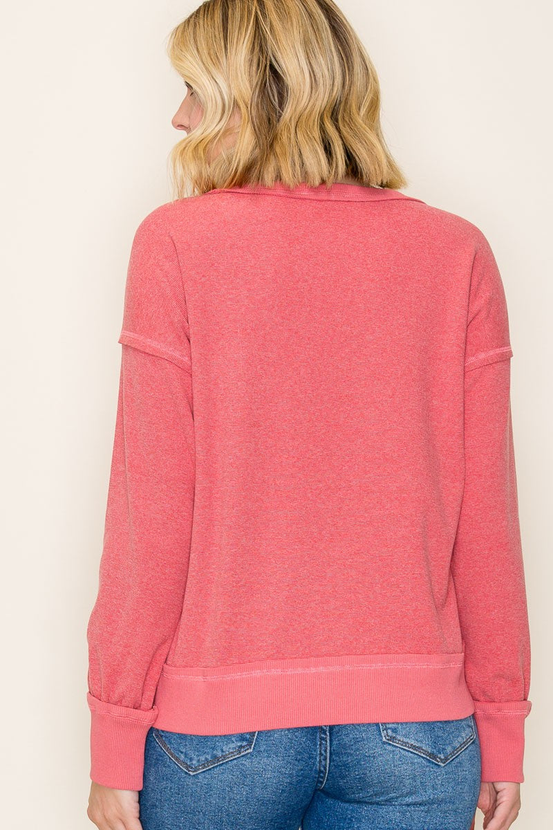 Exposed Stitching Brushed Top - Light Rust