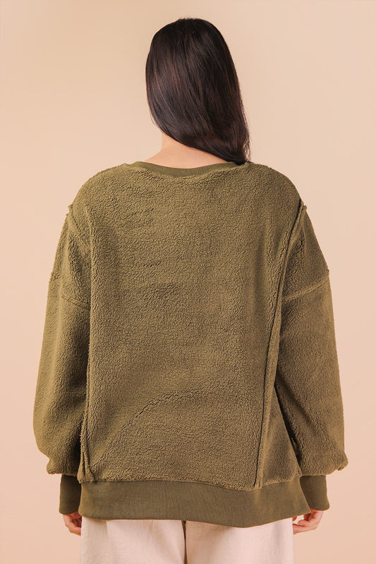 Reindeer Print Short Puff Sleeve Sweater - Dark Green