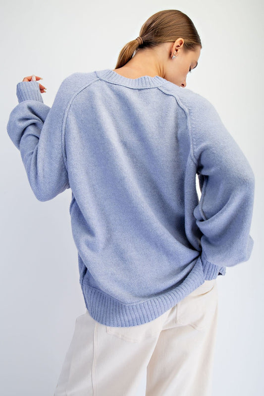 Acid Washed Double Ribbed Hi-Low Pullover - Sand Beige