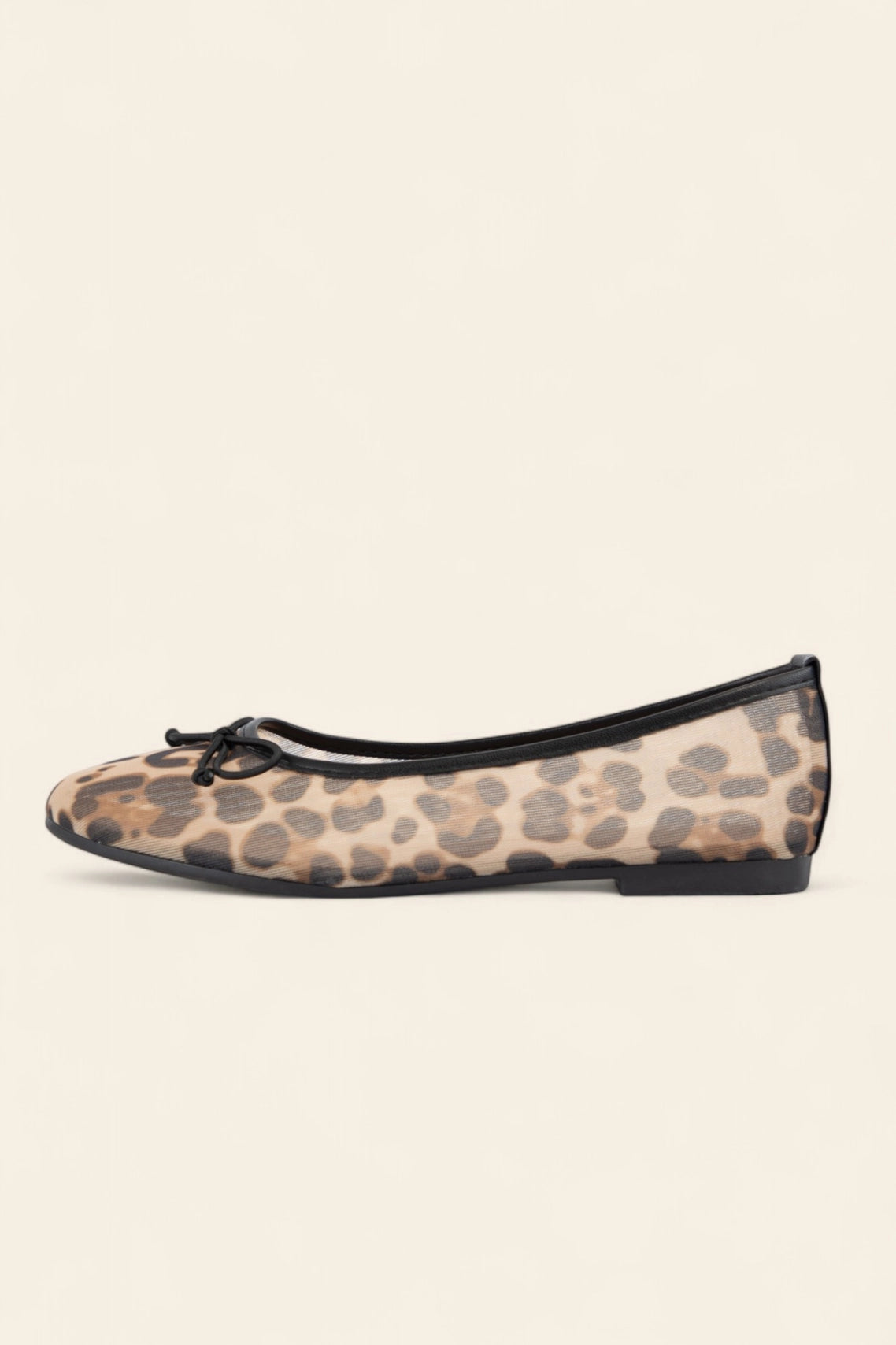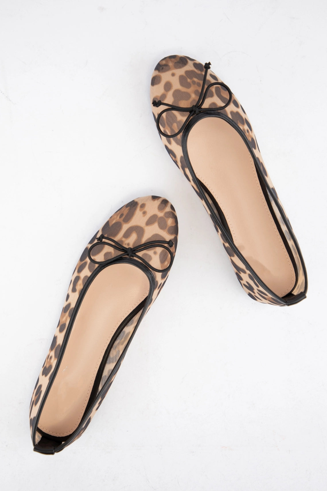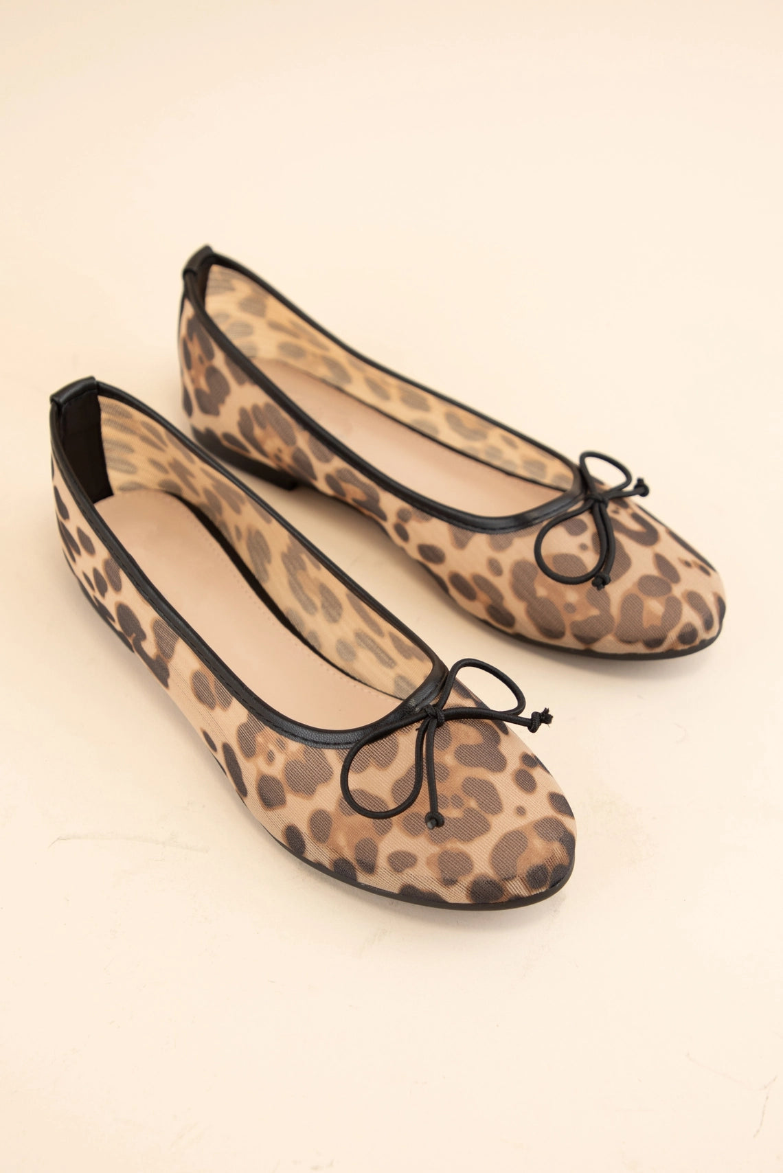Step out in style with these playful Mesh Leopard Printed Flat Shoes. Featuring a chic leopard mesh design, trimmed in sleek black and topped with a cute black bow, they're perfect for adding a fun, wild touch to any outfit while keeping your feet comfy all day.