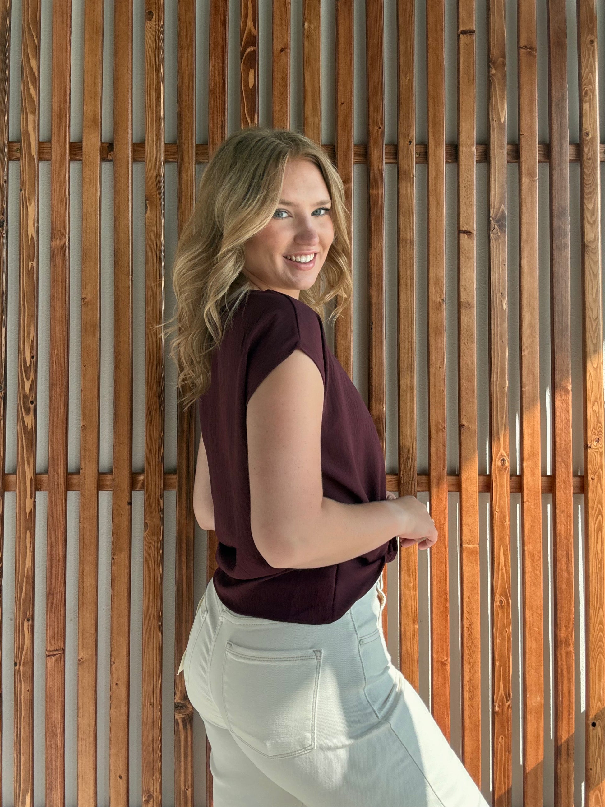 Add a splash of fun to your wardrobe with this Raisin Solid Woven Tee featuring a charming front knot detail. Lightweight and breezy, it’s perfect for keeping cool while turning heads. Whether paired with jeans or skirts, this playful tee brings effortless style and a pop of color to any outfit.