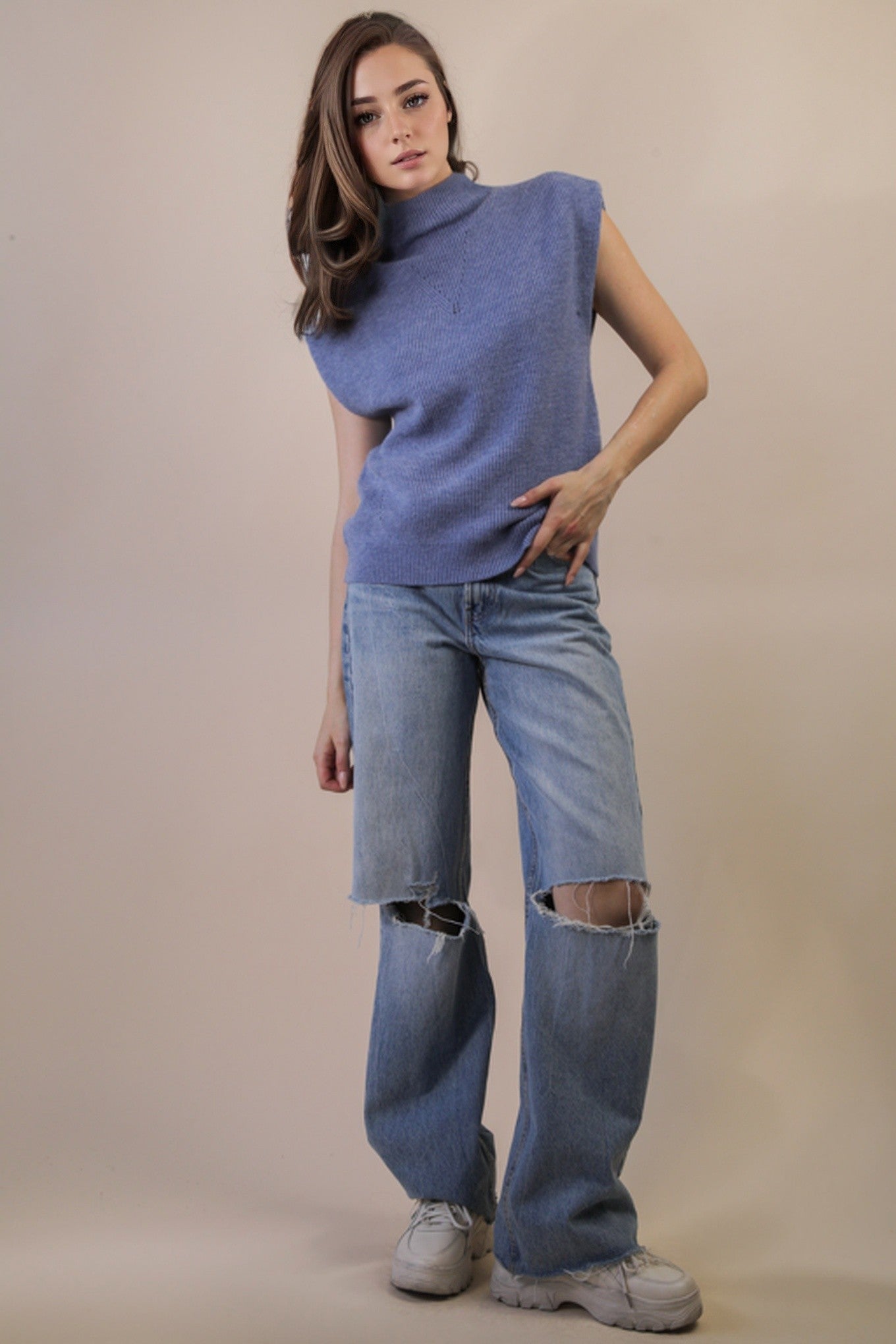 Cozy meets cool in this Soft Knit Sweater Vest Top! Featuring a snug mock neck and a ribbed hem, it adds just the right amount of texture and warmth. Sleeveless for easy layering, it’s perfect for playful outfits that mix comfort with style all day long.