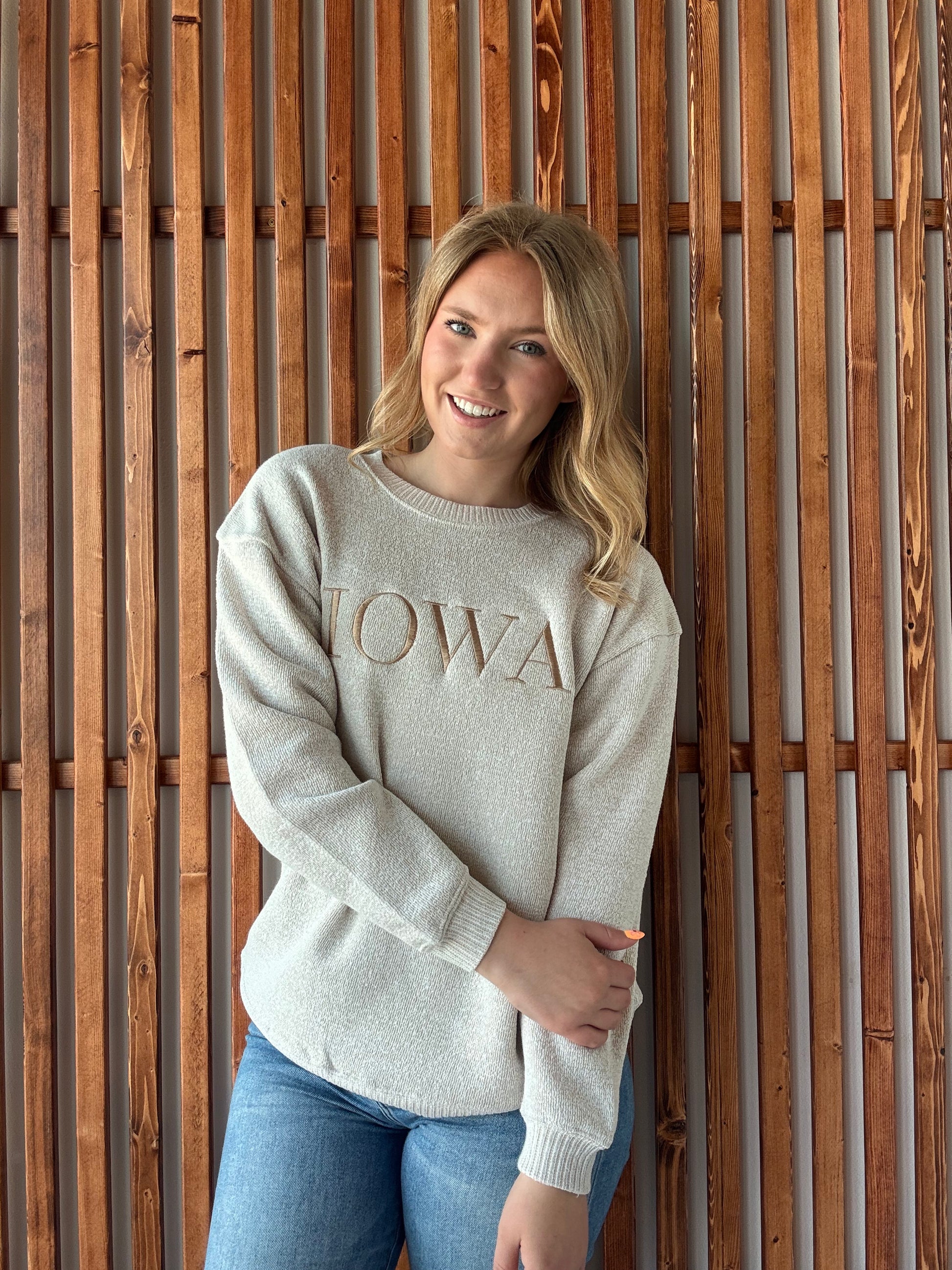 Stay cozy and show off your love for Iowa with our Warm-Up Iowa Crewneck Sweater. Made with high-quality materials, this sweater will keep you warm all winter long. Plus, the embroidered Iowa design adds a touch of personality to any outfit. Get ready to rock this sweater on game day or any day!