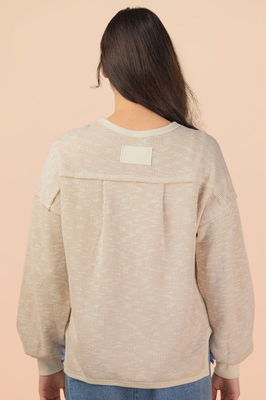 Ribbed Hacci Melange Henley Sweater - Deep Camel